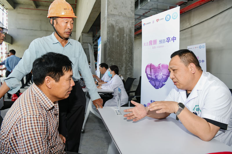 本次活動(dòng),由“城芯同筑”黨群服務(wù)站精心策劃,周密安排。宿遷市第一人民醫(yī)院內(nèi)科黨總支書記、大內(nèi)科副主任、風(fēng)濕免疫科主任臧銀耐心解答現(xiàn)場(chǎng)工友的健康疑問,根據(jù)工友的身體情況給予專業(yè)的醫(yī)療建議及指導(dǎo),得到了現(xiàn)場(chǎng)工友的一致好評(píng)?;顒?dòng)現(xiàn)場(chǎng)以建筑工地常見的意外傷害應(yīng)急處理為主題開展健康知識(shí)講座,生動(dòng)形象的講解處理意外傷害相關(guān)知識(shí)及應(yīng)急救援措施,同時(shí)現(xiàn)場(chǎng)開展全國“愛眼日”及中國“房顫日”等宣傳教育活動(dòng)。
