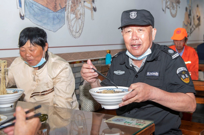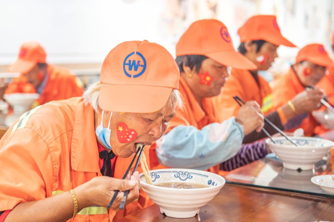一碗“國慶面”,一份愛國情。當(dāng)一碗碗熱氣騰騰、香氣撲鼻的面條送到環(huán)衛(wèi)工人、快遞小哥等堅守在一線崗位上的工作人員手中,大家接過面條,享用著寓意美好的“國慶面”,每個人的臉上都洋溢著幸福和快樂的笑容。大家用最樸素最平常的食物,表達了對祖國母親生日快樂的真摯情感。