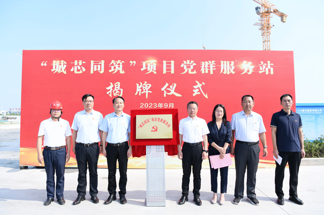 值得一提的是,為推動(dòng)黨建和業(yè)務(wù)雙融雙促,城發(fā)公司在施工現(xiàn)場(chǎng)創(chuàng)新成立園區(qū)首家“城芯同筑”項(xiàng)目黨群服務(wù)站,以黨建引領(lǐng)項(xiàng)目建設(shè),把支部建在項(xiàng)目上,打造“ 項(xiàng)目部 + 黨支部”的新模式。服務(wù)站自成立以來,先后開展了“書記講安全”“交通安全進(jìn)工地,筑牢工友安全線”和“砌筑比武大賽”等專題活動(dòng),為項(xiàng)目建設(shè)保駕護(hù)航、提質(zhì)增效。