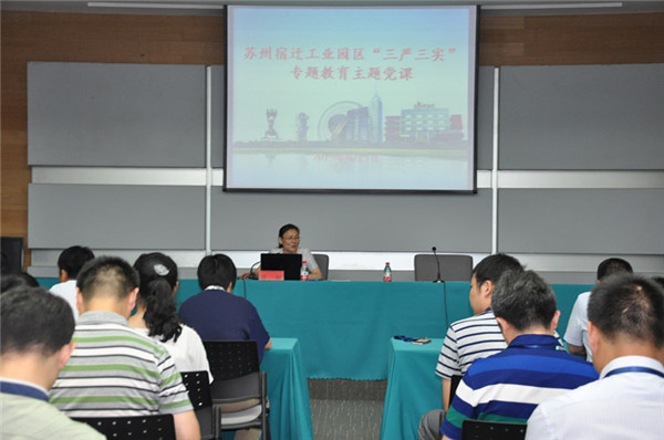 8月5日下午,園區(qū)工委副書(shū)記、管委會(huì)副主任駱敏為園區(qū)機(jī)關(guān)事業(yè)單位、國(guó)資國(guó)企黨員講了一堂“三嚴(yán)三實(shí)”專(zhuān)題黨課。