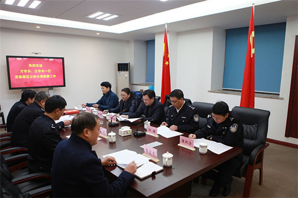 1月13日下午,副市長(zhǎng)、園區(qū)黨工委書記、管委會(huì)主任方文浜,副市長(zhǎng)、市公安局黨委書記、局長(zhǎng)江海等領(lǐng)導(dǎo)來到園區(qū)公安分局開展走訪慰問活動(dòng),先后慰問了全體民警和部分輔警代表,實(shí)地察看園區(qū)派出所技術(shù)用房辦案區(qū)、戶政大廳和指揮調(diào)度中心等場(chǎng)所。