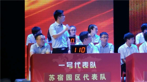 比賽現(xiàn)場氣氛熱烈緊張,特別是在搶答環(huán)節(jié),各代表隊你追我趕,不斷角力。遙遙領先的園區(qū)和洋河新區(qū)角逐冠亞軍的爭奪戰(zhàn),更是讓現(xiàn)場進入白熱化,贏得全場觀眾的陣陣掌聲和喝彩。經過“精彩亮相”、“步步為營”、“快人一拍”和“一錘定音”等四輪激烈競爭,園區(qū)代表隊最終以260分的成績獲得第二名,與第一名洋河新區(qū)隊僅差10分。