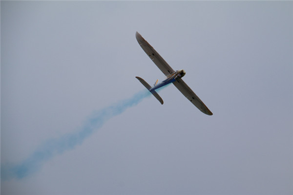 表演中,兩臺(tái)多軸飛機(jī)在場地作繞場及8字飛行,在飛行4分鐘后,隨著背景的高潮音樂響起,在空中打開了橫幅——“共創(chuàng)文明社區(qū),締造幸福家園。”隨后,無論是機(jī)器人的介紹演示、固定翼無人機(jī)的拉煙表演還是直升機(jī)表演,又或是像真機(jī)空中格斗飛行,都讓同學(xué)們?cè)诨?dòng)和操作中充分感受到了科技的飛速發(fā)展,拓展了視野,更對(duì)航空模型制作產(chǎn)生了濃厚的興趣。