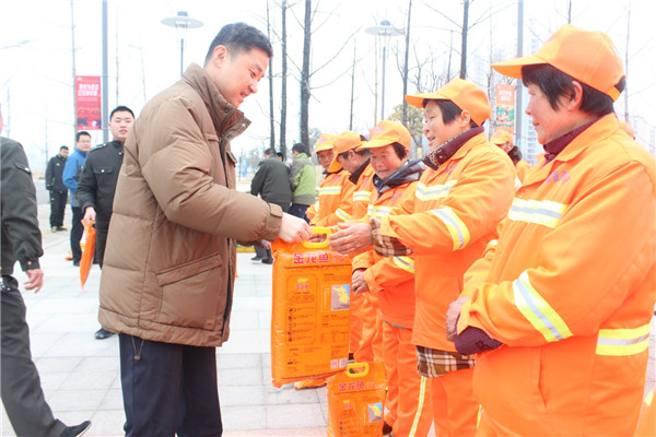 1月18日上午,園區(qū)黨工委委員、管委會(huì)副主任、規(guī)劃建設(shè)局局長許紹杰帶隊(duì)慰問了奮戰(zhàn)在一線的城市維護(hù)作業(yè)人員,向他們送上了春節(jié)的問候。